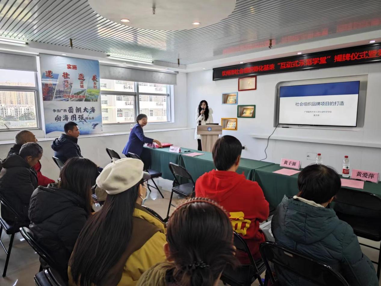 威尼斯人线上 与钦州市社会组织孵化基地举行“互动式示范学堂”揭牌仪式