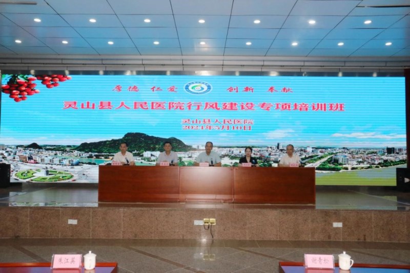 2024年5月10日下午,人文医学系谢青松副教授和朱江英博士受邀给“灵山县人民医院行风建设专项培训班”授课,灵山县人民医院党委书记李嘉卫及全院中层干部及临床骨干共200余人参加了培训,活动由副院长何武剑主持。